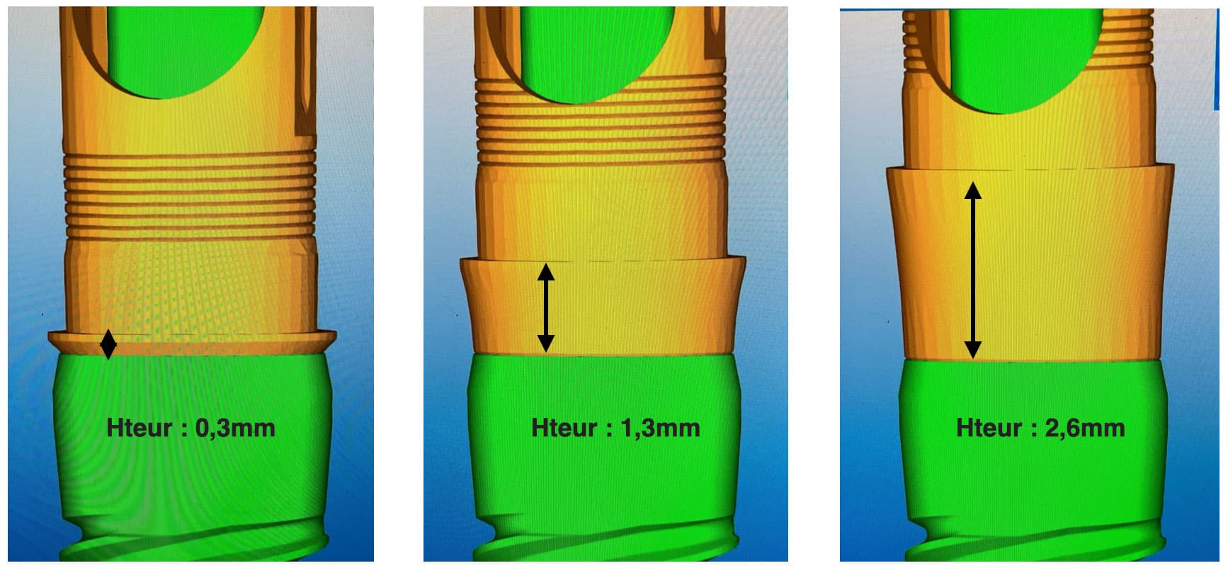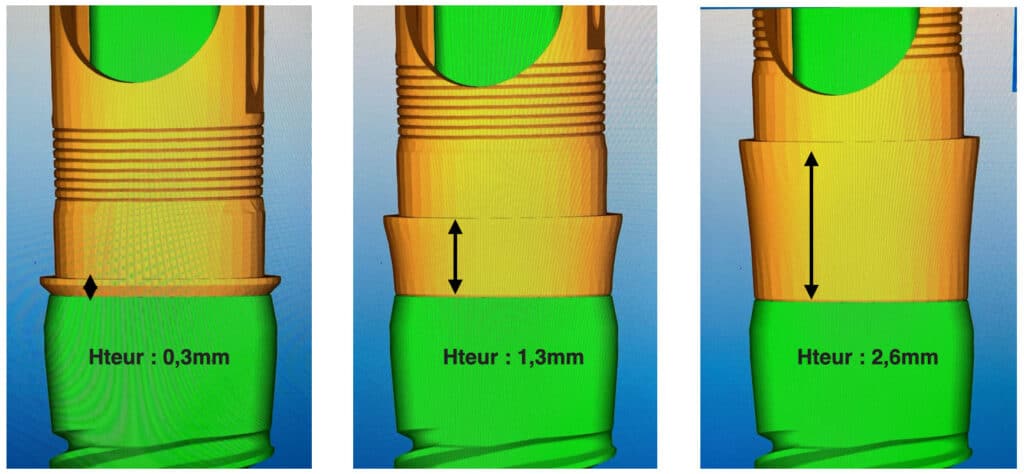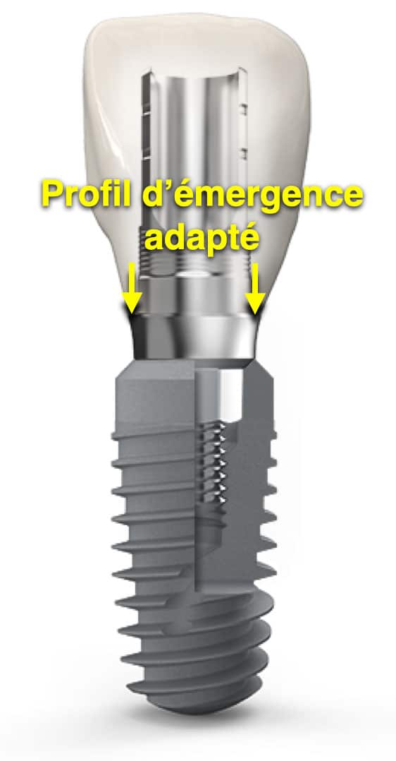 - avec le même profil de départ décliné en différentes hauteurs (comme pour le pilier profilé) permettant ainsi de traiter efficacement un cas d’implant sous-crestal