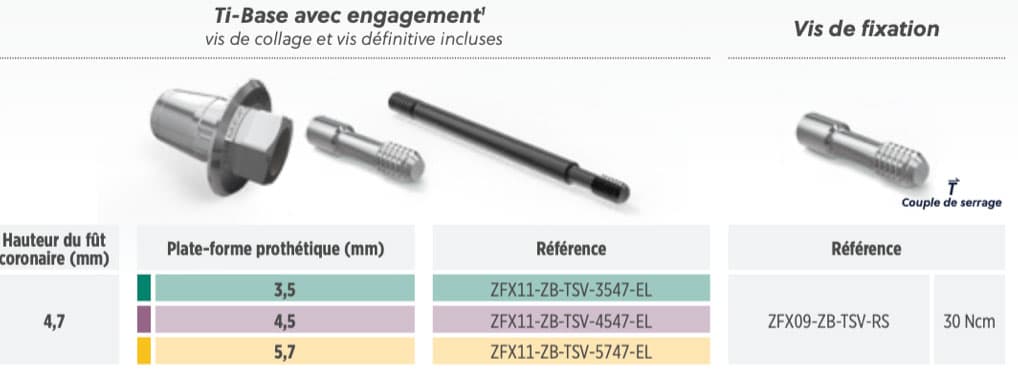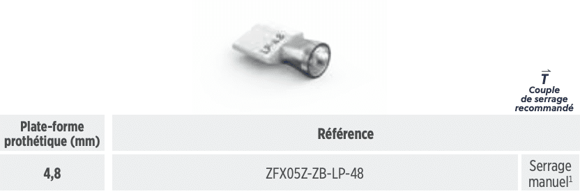 ZFX11-ZB-TSV-4547-EL : pour un implant TSV ou TSX) de plateforme prothétique de 4,5mm