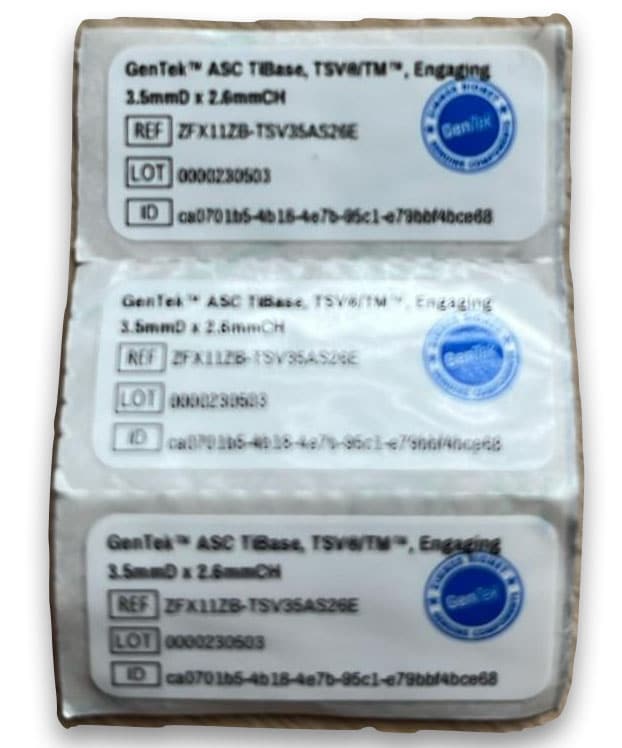 - les piliers Ti-base Gentek dédiés aux nouveaux piliers coniques UMUA (qui vont remplacer l’ancienne génération TAC).