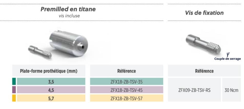 Références : ZFX18-ZB-TSV (puis 35, 45 ou 57 selon le diamètre de la plateforme prothétique de l’implant) figure 5.
