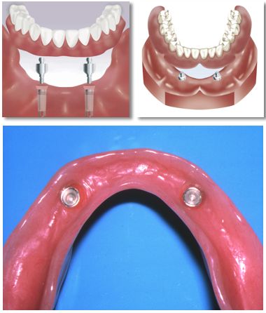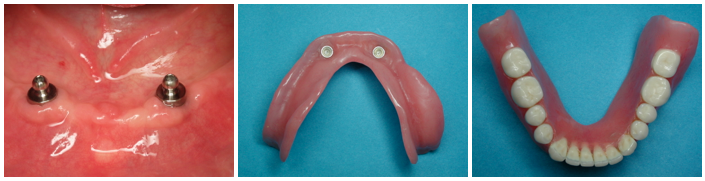 La pose de deux ou de plusieurs implants recouverts de systèmes d’attaches type « boutons pressions » permet d’augmenter considérablement la tenue et le confort de la prothèse, laquelle est ainsi beaucoup mieux acceptée par le patient