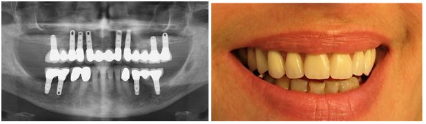 La pose de plus d’implants permet même de restaurer l’arcade édentée au moyen d’un bridge fixe qui permet de supprimer les inconvénients liés à une prothèse amovible