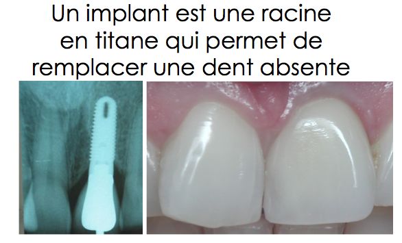 Pour prendre une image familière, on peut comparer un implant à une cheville placée dans un support (l’os) et dans laquelle vient se fixer l’élément prothétique (couronne par exemple).
