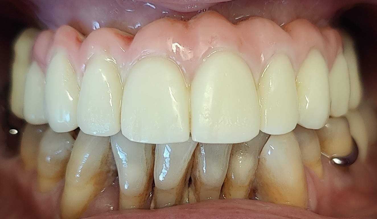 Une attente de 4 mois est alors nécessaire pour l’intégration des implants avant de passer à la réalisation du bridge final